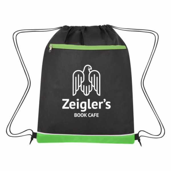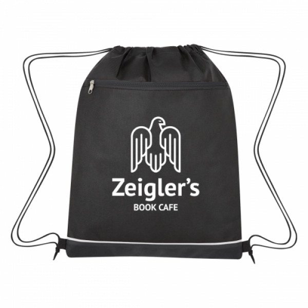 ::Made Of 80 Gram Non-Woven, Coated Water-Resistant Polypropylene::Large Front Zippered Pocket::Drawstring Closure::Spot Clean/Air Dry