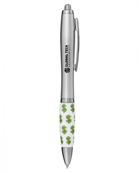- Retractable curvy plastic barrel ballpoint pen with financial theme stock art grip