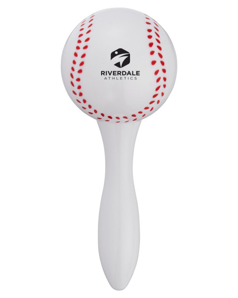 - Baseball-shaped plastic maracas featuring sport-themed stock art