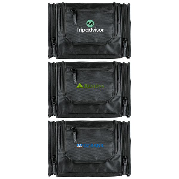 Stay organized while traveling with this durable and functional hanging travel kit, designed to keep your essentials neatly stored and easily accessible. Its high-quality construction and sleek design make it an excellent promotional product that can be custom branded to highlight your company or event.