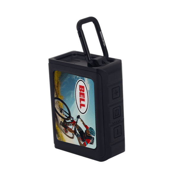 Bring your music anywhere with this compact, powerful Bluetooth speaker designed for performance and style. Featuring a large imprint area on the grill for your custom logo or branding, this promotional product is perfect for both outdoor adventures and everyday use. Its strong magnetic back and attached carabiner make it easy to secure to metal surfaces or clip to your gear, ensuring your favorite tunes are always within reach.