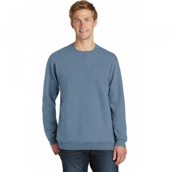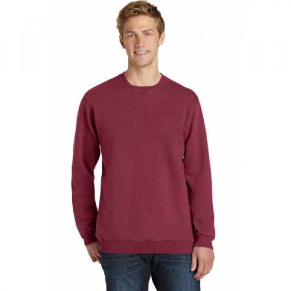 With aged-to-perfection color, this soft, comfortable sweatshirt is essential and authentic.::8.5-ounce, 80/20 ring spun cotton/poly fleece::100% cotton face::2x2 rib knit collar::V-inset at neck::2x2 rib knit cuffs and hem