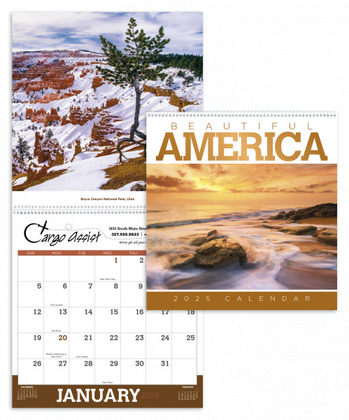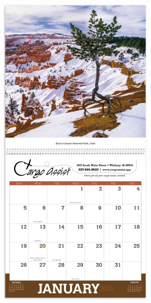 Beautiful photos of noteworthy locations throughout the United States are featured in this incredible calendar. The superb look will appeal to any business.