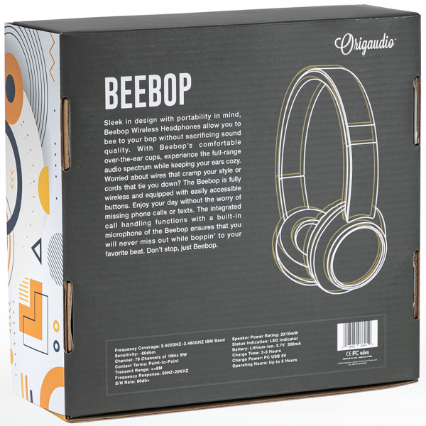 The Beebop™ Wireless Headphones deliver a full-range audio spectrum with effective outside noise reduction, ensuring an immersive listening experience. Equipped with a built-in microphone, these headphones allow for seamless call handling and text notifications, keeping you connected without interrupting your music. The Beebop™ Wireless Headphones combine functionality and convenience, making them an excellent choice for everyday use.