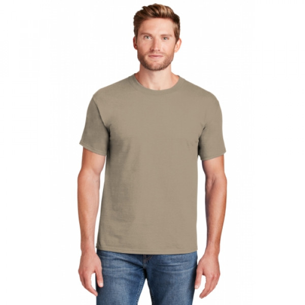 The Hanes® Beefy-T Born to Be Worn 100% Cotton Company T-Shirt is a great choice for company t-shirts.This tee will go over big with an improved fit and more length in extended sizes. The Hanes® Beefy-T Born to Be Worn 100% Cotton Company T-Shirt is ideal and economical.::Double-needle coverseamed crewneck::Shoulder-to-shoulder taping::Double-needle sleeves and hem