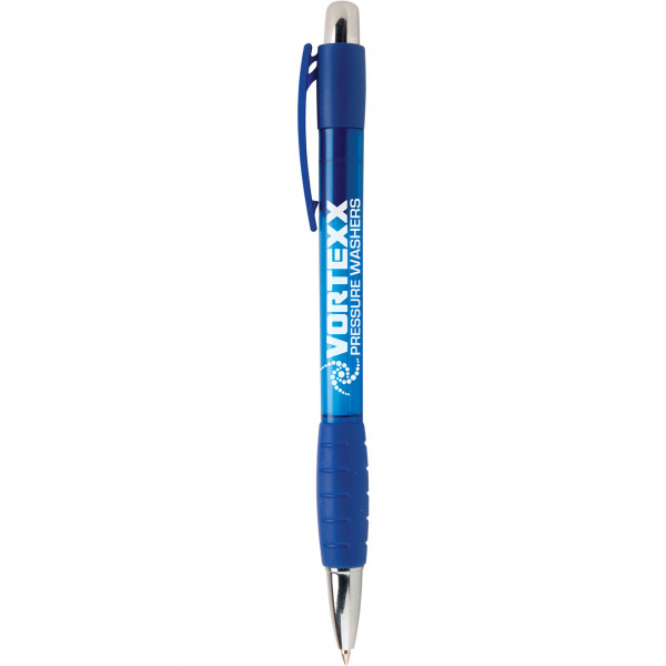 This eye-catching pen is designed to impress with its crisp white barrel, vibrant colored trim, and bright silver accents. The push retractable mechanism and ultra-smooth cartridge ensure a flawless writing experience, while the generous rubber grip provides comfort and control. A perfect promotional product, this pen can be custom branded to showcase your logo with every stroke.