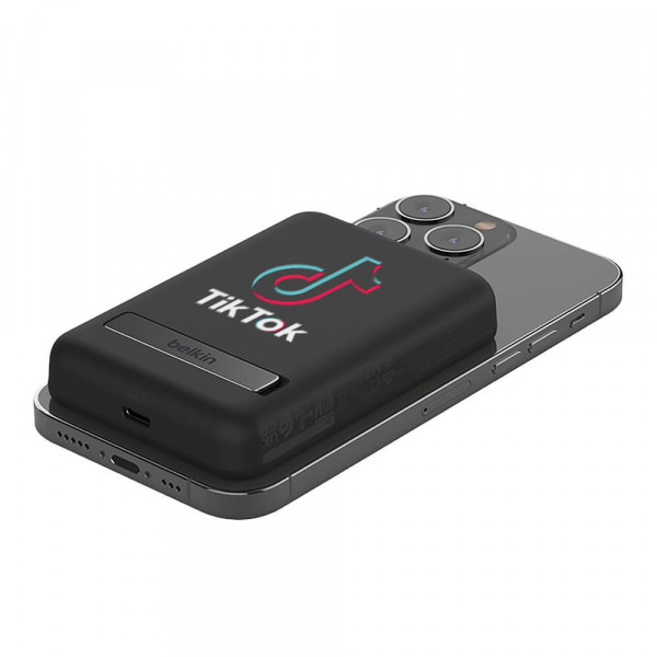 Our portable Magnetic Wireless Power Bank 5K + Stand delivers a safe 7.5W of wireless charging power to your device without cables or a need to connect to a power source. The fold-out stand offers a convenient and hands-free way to stream or video call while you charge.