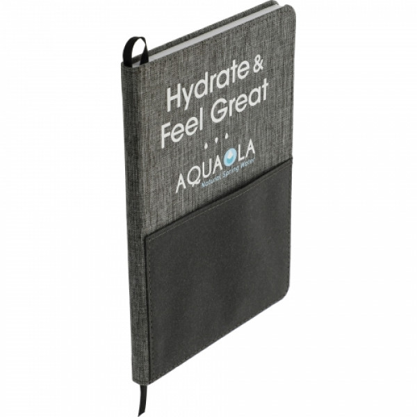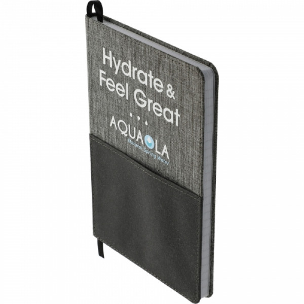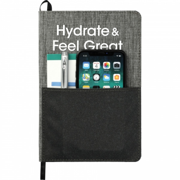 Made of post-consumer recycled fabrics, the 5.5'' x 8.5'' FSC® Mix Reclaim Recycled Bound Journal features a RPET hard cover with recycled leather front pocket for storing documents, smartphone, and other essentials. This notebook includes 80 sheets of FSC® Mix recycled white paper and a back document pocket. This item contains 85% of recycled material. Through a partnership with 1% For The Planet, one percent of sales of this and all EcoSmart products will be donated to nonprofits dedicated to protecting the planet.