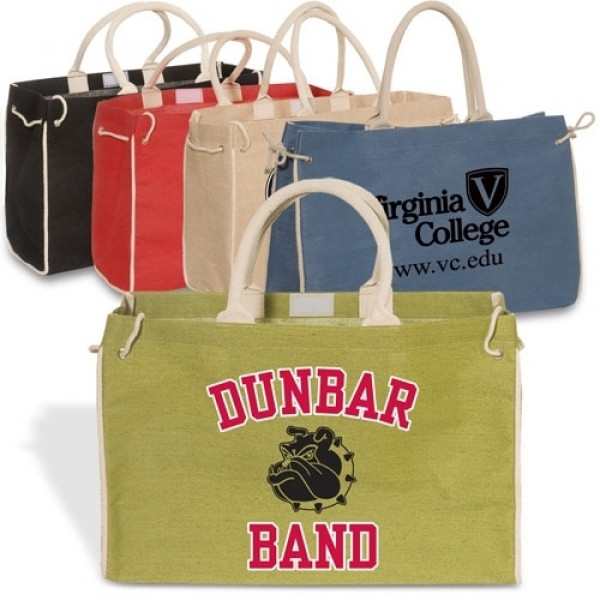 ::Made from 73% jute and 27% cotton::Padded cotton handles, velcro closure, and decorative adjustable cotton drawstring side ties ::An Eco-Responsible™ product