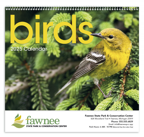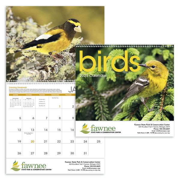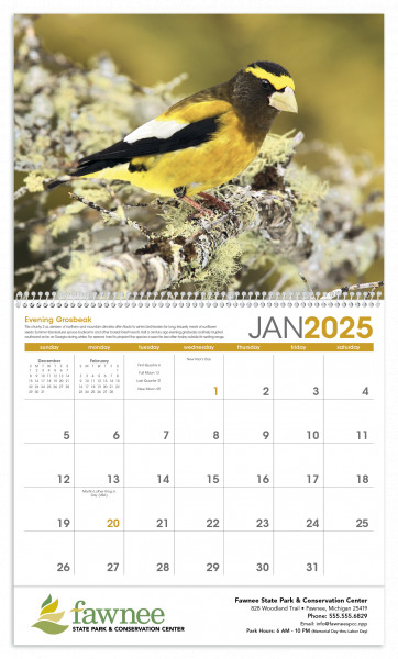 Up-close shots of North America's most vibrant and colorful birds are featured in this calendar. Information about each bird is also included.
