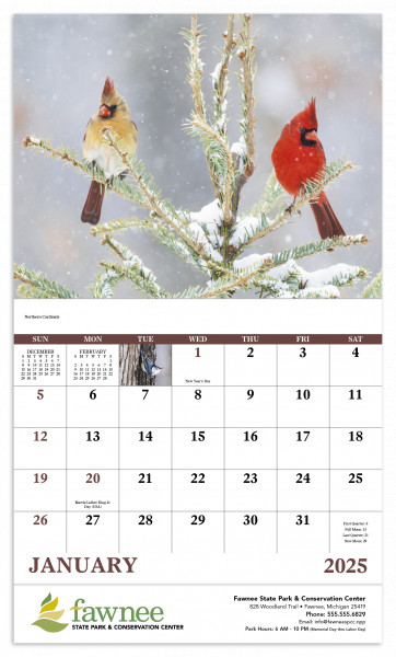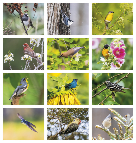 Colorful birds make the year fly by.