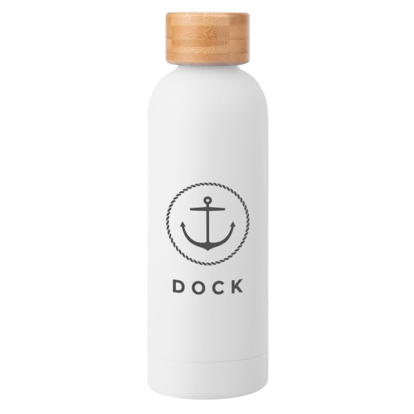 Sip sustainably with this 17 oz. recycled stainless steel bottle, designed for everyday use and perfect as a promotional product that can be custom branded for any event or organization. Its smooth rubberized finish and bamboo-accented lid create a modern, eco-minded look while keeping beverages at the ideal temperature.