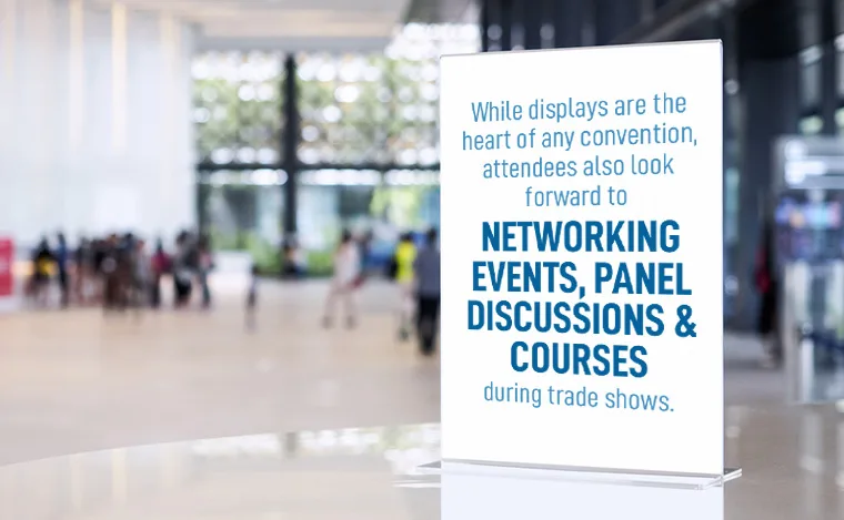 - Host offshoot events—While displays are the heart of any convention, attendees also look forward to networking events, panel discussions, and courses during trade shows. Sponsor an evening event that’s fun and engaging—think: happy hour with a free drink or two or a networking event that includes games and team-building—to create a little buzz around your business.