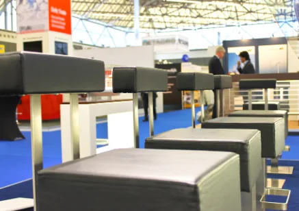 Booth furniture is one of the biggest expenses when it comes to outfitting a trade show booth, which is why there are many companies that offer rental services. If you only exhibit on occasion, it might make more financial sense to rent furniture rather than purchasing it outright. However, if you attend a lot of shows, buying the furniture may be worth the investment in the long run, so do the math (and don’t forget to include shipping charges.) If you’d like to own your booth but don’t want to pay like-new prices, used booth furniture is also available for sale.