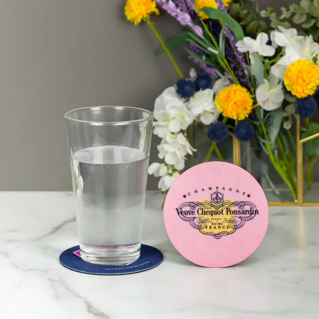 Coasters also help keep things neat and tidy. They protect tables from watermarks and stains, meaning less cleaning and longer-lasting furniture. Your staff can quickly refresh tables with new coasters, making sure everything runs smoothly even during busy times. Each drink served comes with a coaster that promotes your brand without extra cost.