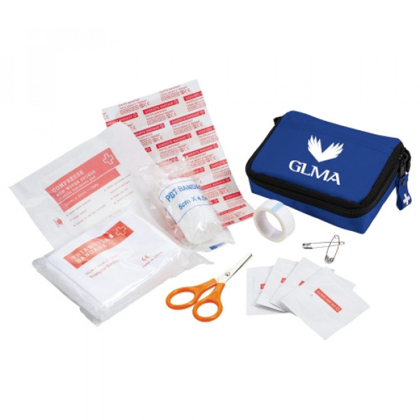 Be prepared wherever you go with this compact 20-piece first aid kit, designed for travel, work, or outdoor activities. Housed in a durable nylon zip-closure pouch with a convenient belt loop, it keeps essential supplies close at hand for quick response to minor injuries. This practical kit also works well as a promotional product that can be custom decorated or branded for events, safety programs, or giveaways.