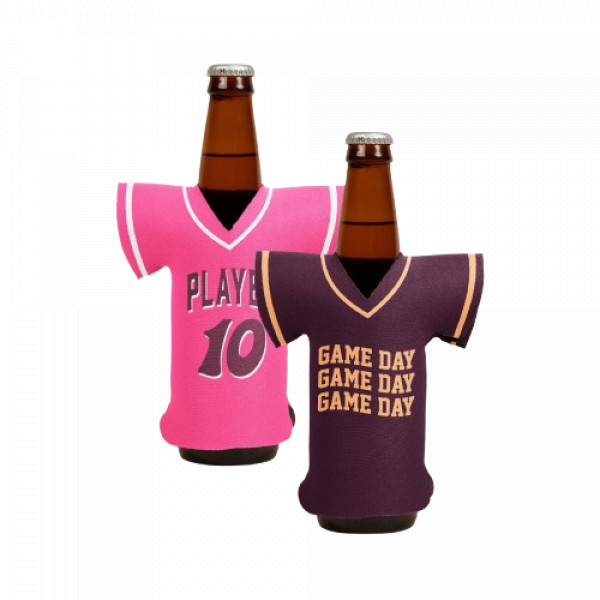 The Bottle Jersey is a fun and functional beverage insulator designed to keep your drinks cool while showcasing your brand. Made from 1/8" thick high-density open-cell scuba foam, this collapsible insulator fits most longneck bottles, making it perfect for various events and occasions. As a promotional product, it offers ample space for custom decoration, allowing your brand to stand out at any gathering.