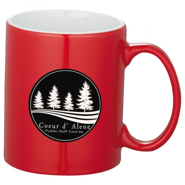 Classic design. C-handle mug with white interior accent. See General Information page for special ceramic item handling charge. Hand wash only. Follow any included care guidelines.