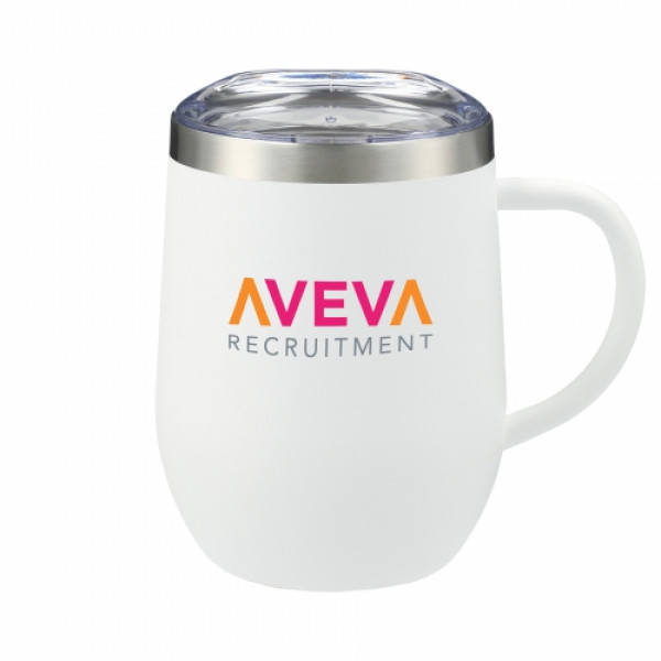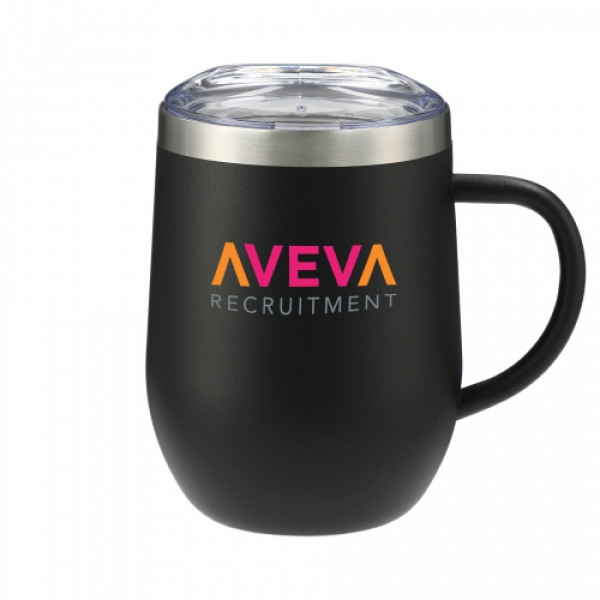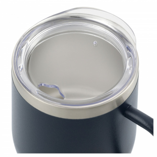 ::Durable, double-wall stainless steel vacuum construction with copper insulation, which allows your beverage to stay cold for 24 hours and hot for at least 6 hours. ::Features the durable stainless steel handle design. ::The construction also prevents condensation on the outside of the piece. ::On-trend, durable powder coating. 12 oz.