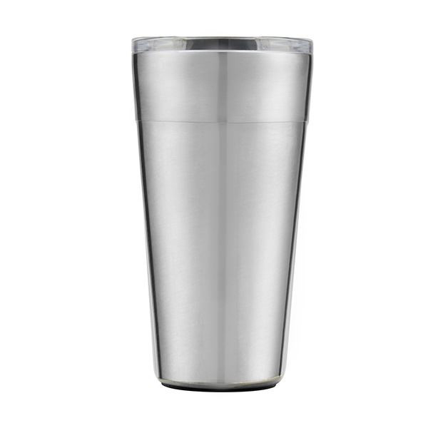 Vacuum-insulated and includes clear plastic lid with slidable spout cover.