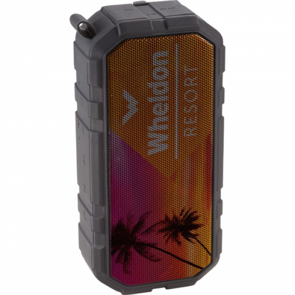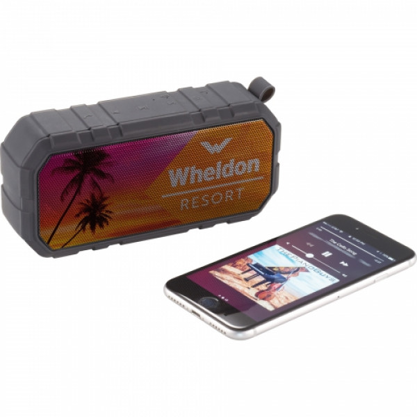Enjoy your favorite music regardless of your location. ::Take the Brick outdoor speaker with you to the pool, on your hike, or to your next house party. ::The 6 Watt output is capable of filling any location with quality sound. The Brick has a waterproof rating of IPX6.::Includes Micro USB Charging Cable and carabineer clip. Bluetooth working range is 10 meters (33 feet). ::Enjoy up to 4 hours of music at max volume on a single charge. ::It takes 4 hours to charge the speaker from 0 to 100%.