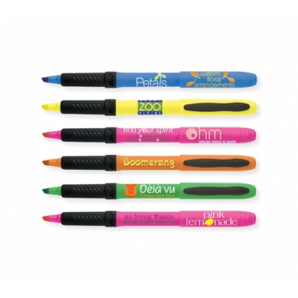 A bright barrel compliments the ink color. Includes gray textured rubber grip.::Bright barrel and ink colors::FREE set-up::Includes textured rubber grip::Multiple imprint options::U.S. Patent Nos. 6,485,211B1::Mechanism: Two-Piece