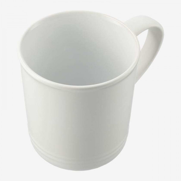 The mug features handsome outer-ring detailing near its base. It is microwave safe.