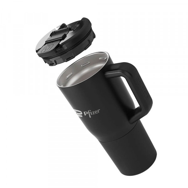The Müv 35oz was made for fueling your day and is the most feature-packed coffee mug with a handle there is. It has our 100% leakproof BevLock™ lid to seal in your beverages and stop leaks, our brand-new, OctaLock™ thread system to make taking your lid on and off a breeze, and our MagFlip™ technology to assist in keeping your lid open while you sip. Also equipped with a scratch-resistant + comfort grip handle, a cup holder friendly base, a removable, color-matched silicone sleeve for ultimate durability, and our BevGuard™ technology to keep your drinks hot for 6+ hours or cold for 24+ hours.