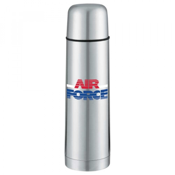 The Bullet 16.9oz Vacuum Bottle features double-wall construction and a leak-proof locking cap. ::It helps keep drinks hot for 5 hours and cold for 15 hours. ::Engraving is also available on the top of the cap only. ::The pouch is not available for imprint and bottles are not inserted in pouch. ::Hand wash only and allow any included care guidelines.