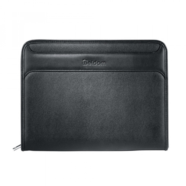 Brand a company, service, or product with this traditional padfolio. ::Interior organizer features multiple business card pockets, clear ID window, gusseted file pocket, elastic USB holder and pen loops, and accessory pouch with velcro closure. ::Includes 8.5" x 11" lined notepad.