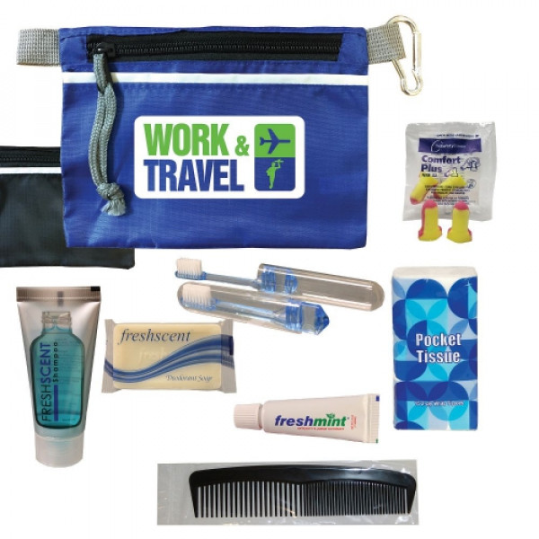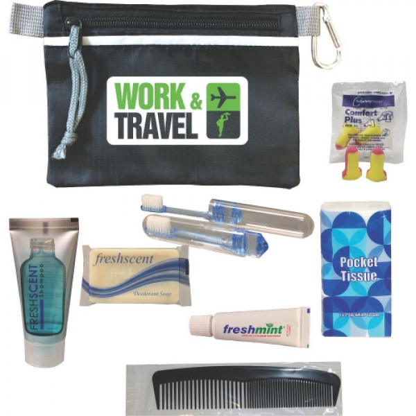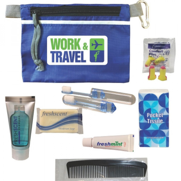 ::An excellent choice for a hygiene kit or for a homeless kit. ::The ideal travel kit for business or pleasure. ::Kit includes: 1 Shampoo Bottle, 1 Soap, 1 Travel Toothbrush, 1 Toothpaste, 1 Tissue Pack, 1 Comb, 1 Pair Ear Plugs ::Although our travel bag has most of the items needed for a trip, we have left room for some other personal items as well.