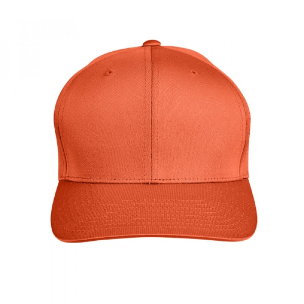 ::3.8 oz/yd2 / 130 gsm, 100% polyester interlock::Moisture-wicking::UV protection performance::6 panel, structured, mid-profile::Heavy buckram in front panels::Sewn eyelets::Adjustable snap-back closure