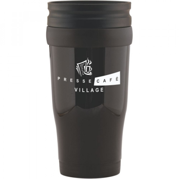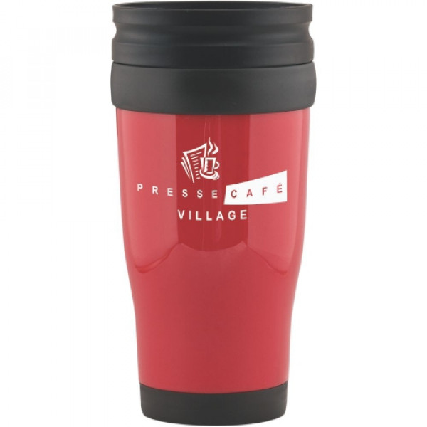 ::Double wall insulated::High gloss plastic exterior::Plastic inner wall::4-station thumb-slide lid::Cup holder friendly::Hand wash recommended and not intended for microwave use
