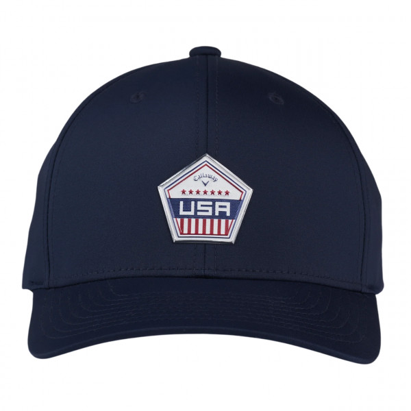 The Callaway Golf Patriot Cap is a stylish and performance-focused headwear option, perfect as a promotional product that can be custom decorated or branded. Featuring a mid-profile design, this cap offers a comfortable fit that sits perfectly on the head without being too high or too low. Its standout patriotic "USA" patch adds a touch of Americana, while the Flexfit 110® construction combines stretch-fit comfort with the adjustability of a Velcro closure. Made from lightweight, performance-driven fabric, this cap keeps you cool and comfortable during active wear, with a moisture-wicking sweatband and 30+ UV protection to shield your face from the sun.