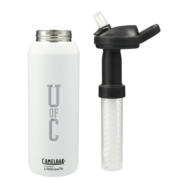 Filtered by LifeStraw, a high-performance bottle built for both everyday use and outdoor adventures. Featuring a built-in LifeStraw filtration system, this bottle delivers clean, great-tasting water with every sip. The double-wall stainless steel construction with copper vacuum insulation keeps drinks hot for up to 8 hours or cold for up to 24 hours. With a spill-proof bite valve, one-finger carry handle, and wide-mouth opening, it's designed for convenience on the move. A great choice for a branded promotional item, this bottle can be customized with your logo for lasting visibility.