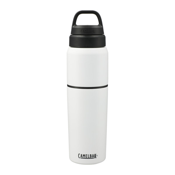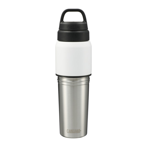 The CamelBak MultiBev 22oz Bottle & 16oz Cup is a versatile 2-in-1 beverage container designed for sustainability and convenience. It functions as both a water bottle and a detachable travel cup, making it ideal for various beverages throughout the day. Constructed from double-wall vacuum-insulated stainless steel, it maintains the temperature of your drinks for extended periods. The leak-proof Pak™ Cap securely stores the Roll and Fold Lid when not in use and can also hold small essentials like tea bags or snacks. Its durable powder coat finish and non-slip silicone base enhance its usability, while the dishwasher-safe components ensure easy cleaning. The CamelBak MultiBev 22oz Bottle & 16oz Cup is an excellent choice for those seeking a multifunctional and sustainable beverage container suitable for various daily activities.
