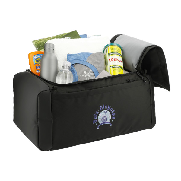 The zippered main compartment has enough room to pack for a weekend trip. This duffel features a side, zippered water botte pocket and an easy-access front zippered pocket. The reflective CamelBak® logo is great for nighttime visibility.Details