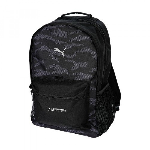 ::Iconic Puma Logo on back w/Camo design::Ventilated back panel and shoulder straps::Side zipper access into laptop compartment::Top cinch closure into main compartment