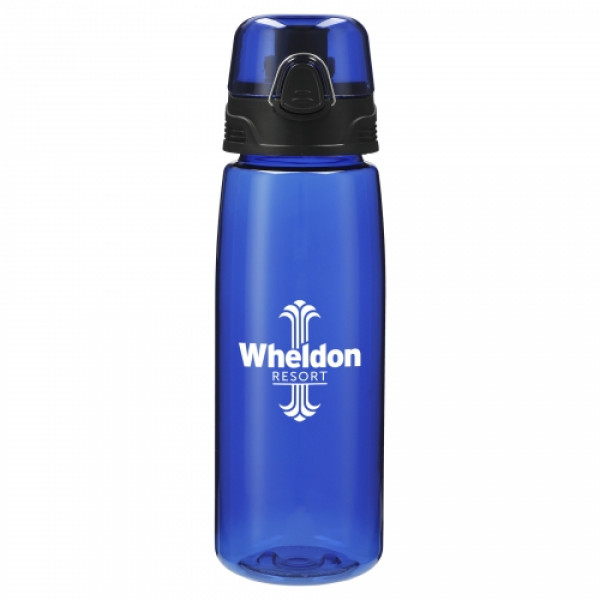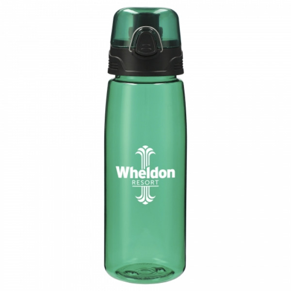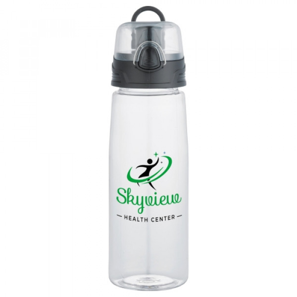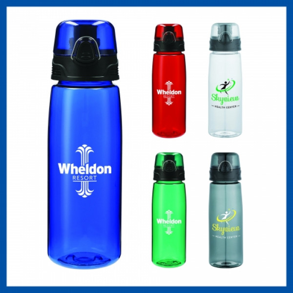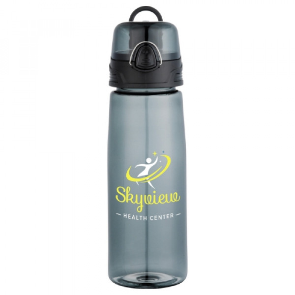 The Capri 25oz Tritan™ Sports Bottle features single-wall construction and a press-button flip-open drinking lid with a spout. ::It also includes a metal locking latch and a plastic carry loop. ::Hand wash only and follow any included care guidelines.
