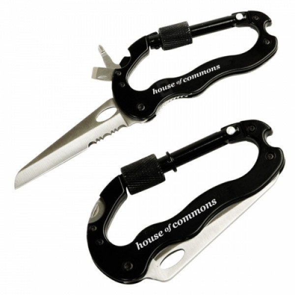 For the outdoorsman in all of us, the Carabiner Pocketknife has a combination straight and serrated blade that locks securely. It's ideal for camping, fishing, hunting, and hiking. This carabiner also features bottle opener functionality, as well as, a screw latch and a phillips/flathead screwdrivers. ::Please note: this carabiner is not intended for climbing!