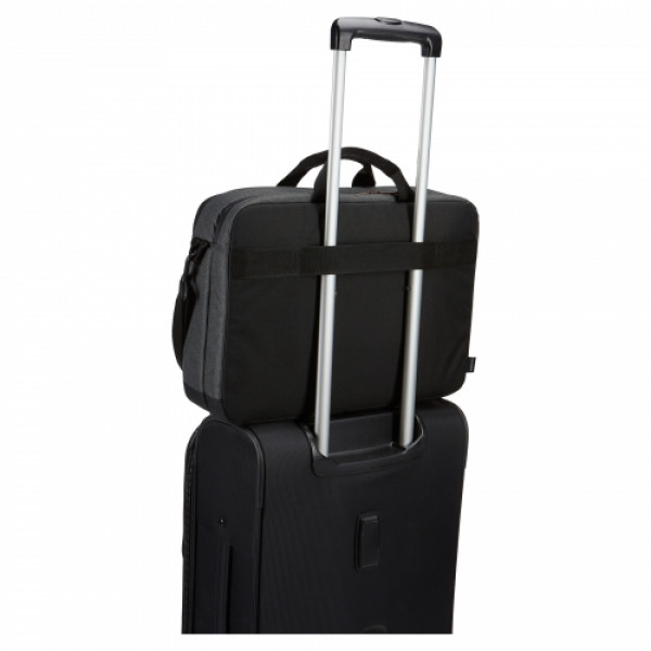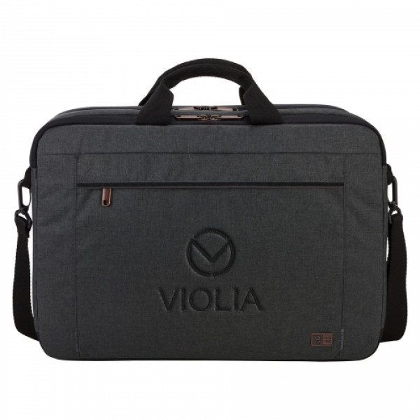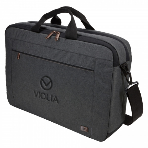::The Case Logic Era 15" Computer Attache is a slim laptop case for all workday essentials, perfect for the modern professional who likes to keep things simple and stylish. ::Take your laptop and tablet on the go with the padded storage for a laptop up to 15.6" and the dedicated slip pocket for a 10.5" tablet. ::Store your small essentials and phone in the quick-access front pocket. ::The removable, padded shoulder strap adjusts for a custom fitwhile the padded carry handles ensure comfortable transport. ::The luggage strap securely attaches slim case to most rolling luggage for when you're on the go. ::Mélange fabric, copper touchpoints and trim details create a modern professional look.