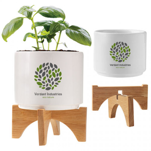 Bring modern elegance and sustainability to any space with this Ceramic Planter Set with Bamboo Stand. Featuring a clean, minimalist design, it’s the perfect accent for homes, offices, or workspaces while offering everything needed to grow a personal indoor garden. Packaged for gifting and easy planting, this set also makes an excellent promotional product that can be custom branded with your logo or message for a lasting impression.