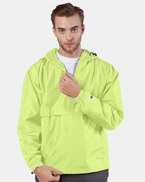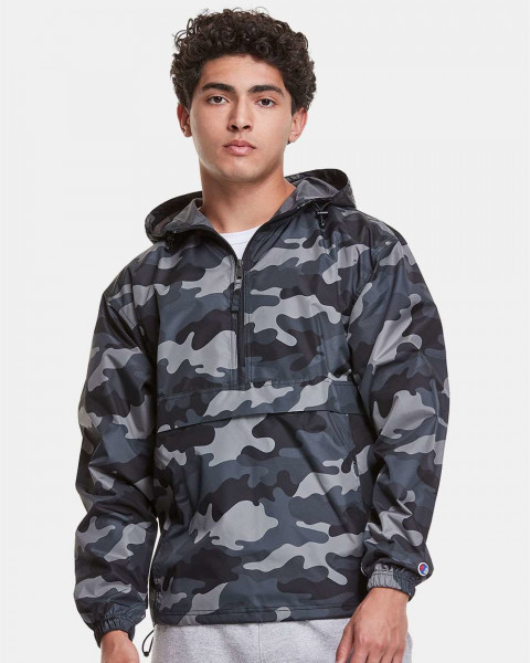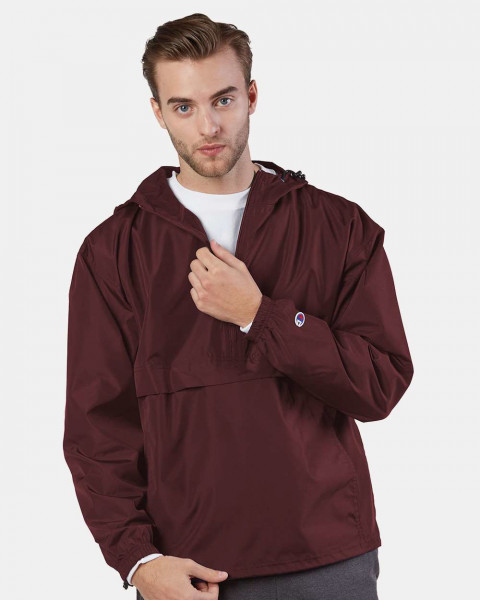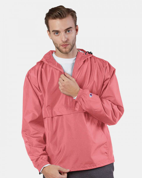 - Half-zip hood with adjustable bungie cord