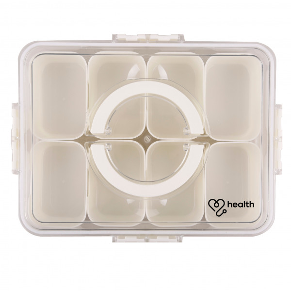 Grazing, to-go! This portable charcuterie tray features 8 removable compartments for meats, cheeses, fruits, and more. A clear lid shows off your spread, while the sturdy handle makes it easy to carry anywhere. It's perfect for picnics, parties, or everyday snacking in style. This is a fun and functional promotional product that can be custom branded to showcase your logo. BPA-free and meets FDA requirements. Dishwasher and microwave safe.