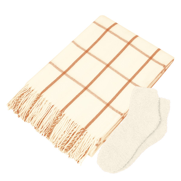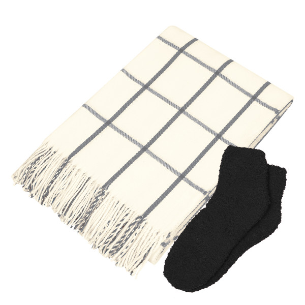 Set Includes: Charleston Fringed Throw Blanket And Fuzzy Socks
