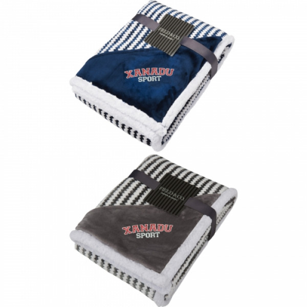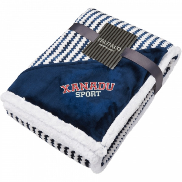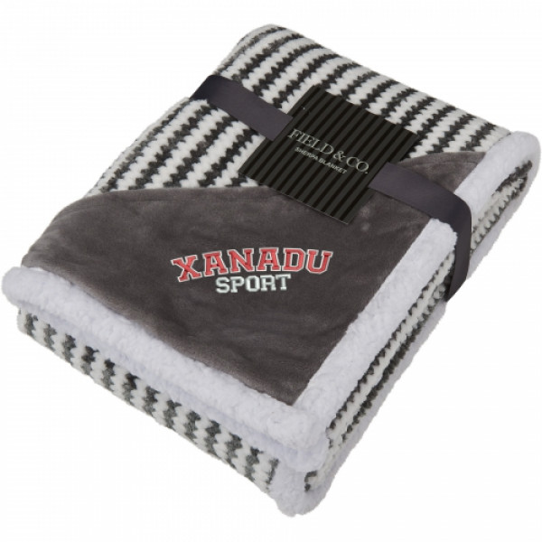 Add a touch of style and comfort to your space with this chevron striped Sherpa blanket. Featuring a modern design with classic Field & Co.® branding, this blanket combines soft velour on one side with a plush Sherpa backing for ultimate coziness. Perfect for lounging at home or gifting, it offers a luxurious feel and timeless look. Personalize it with free embroidery decoration, with run charges waived for up to 10,000 stitches.