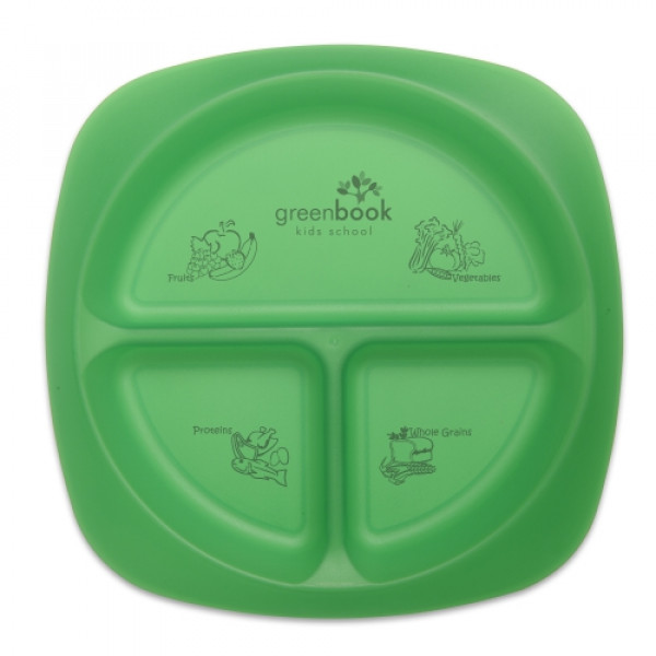 ::Durable food grade polypropylene plate has three compartments to help with portion control::Large half is recommended for fruits and vegetables, and two smaller quarters for grains/starches and meats/proteins::Reinforces balanced eating and a healthy diet and USDA nutrition guidelines for children::CPSIA compliant::Top rack dishwasher safe::BPA Free::Microwave safe
