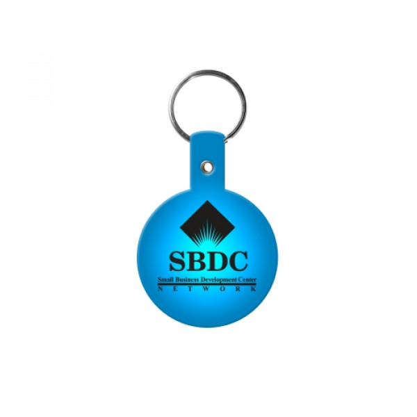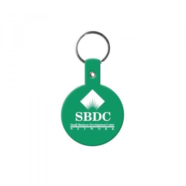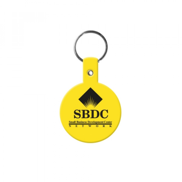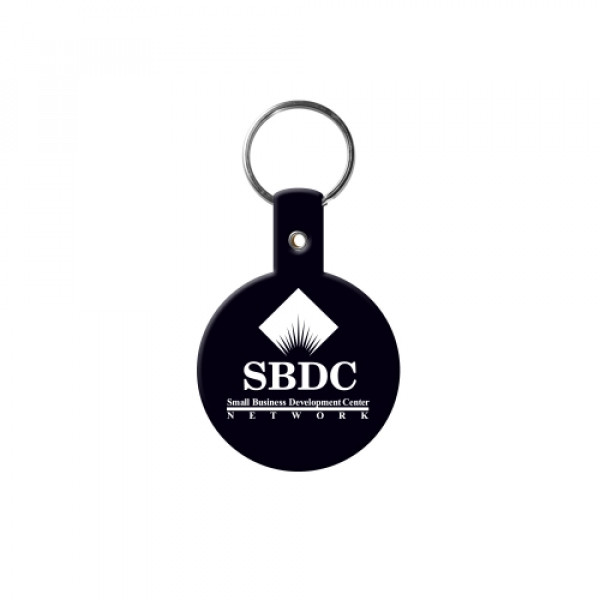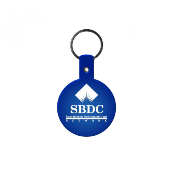 Circle-shaped, flexible key tag is pad printed to display your logo or message. Includes a 1" split-ring or you can specify a 1.5" split-ring for an additional charge.