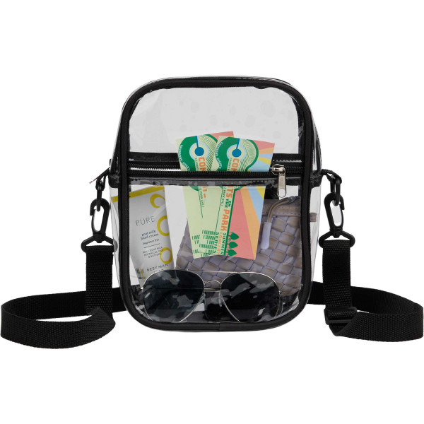 Stay hands-free and hassle-free with this Clear Crossbody Tote — compact, functional, and designed for busy days, events, and travel. The transparent construction meets stadium and event security requirements while keeping essentials visible and secure. A zippered main compartment and front zippered pocket provide organized storage, while the adjustable, detachable strap offers comfortable wear. Ideal as a custom branded promotional product, this clear tote is perfect for concerts, sporting events, travel, and everyday outings.