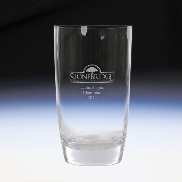 Our new lead-free crystal vase has a clean, uncut look and features an imprint area suitable for engraving.